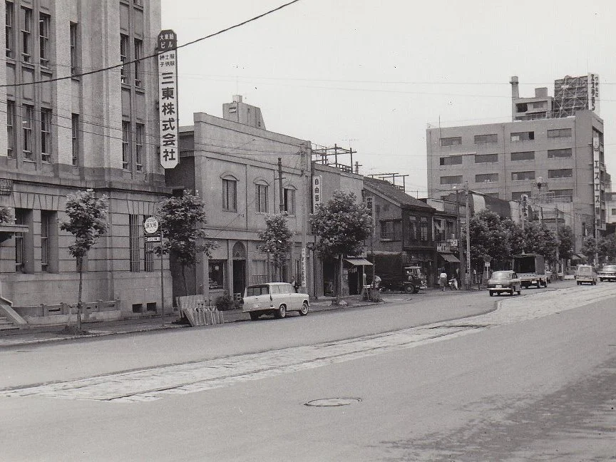 Jiyu Ongaku Gakuen (Academy), a vocational school of music founded by my grandfather in 1946, ended its 66-year history this March. Some of their old photos are now archived with a detailed chronology on a dedicated Facebook page where you can retrace their footsteps. This is the school building in Nihonbashi Kakigaracho, built in 1965. I still have a faint memory of the Toden streetcars running along the street in front of it.
