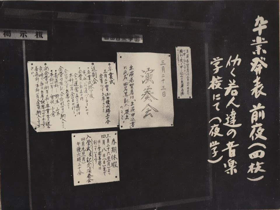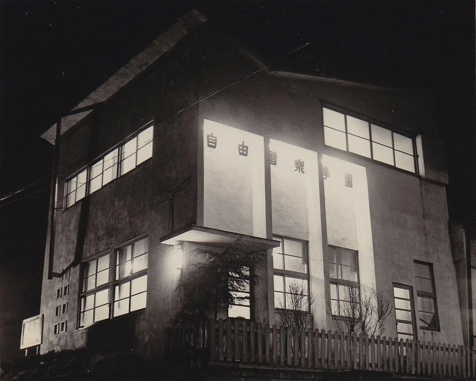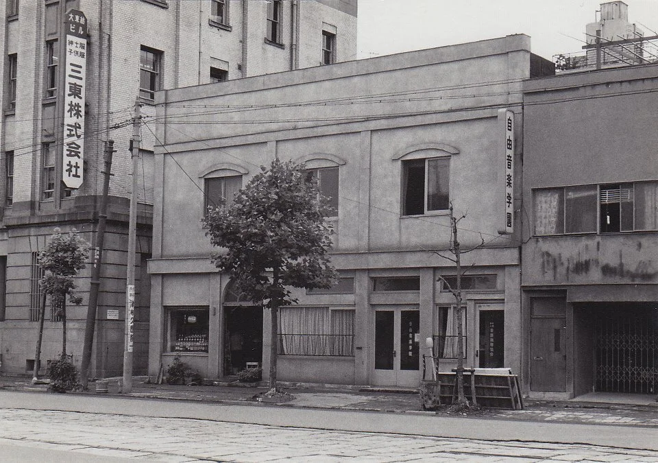 僕の祖父が1946年に創設した音楽の専門学校「自由音楽学園」が、この3月、66年の歴史に幕を下ろした。そこで学校の足跡をたどる専用のFacebookページが新たに作られ、年表と一緒に古い写真のアーカイブを見ることができるようになった。これは1965年に日本橋蛎殻町に建てられた校舎。学校の前の通りに都電が走っていたことを微かに憶えている。