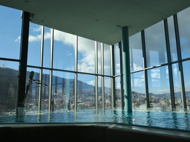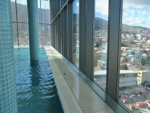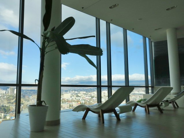 There is a sophisticated spa with a cafe on the top floors of the hotel. I enjoyed a few laps, a massage, and after-dinner coffee there. It's still unimaginable that this place was a refugee camp when I started to work.