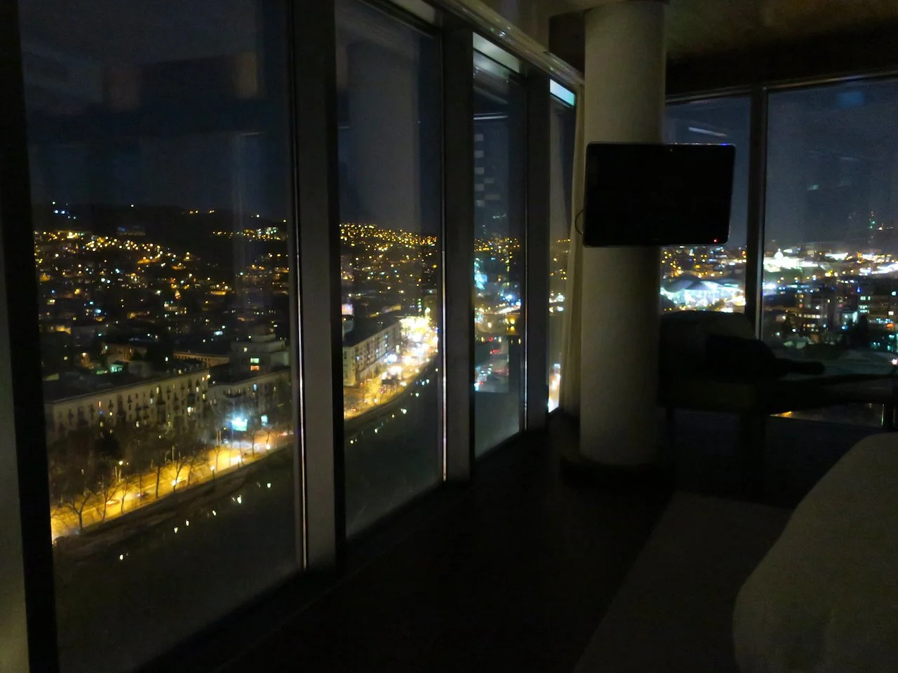 夜、部屋はこんな感じ。カーテンを閉めるのが惜しい。