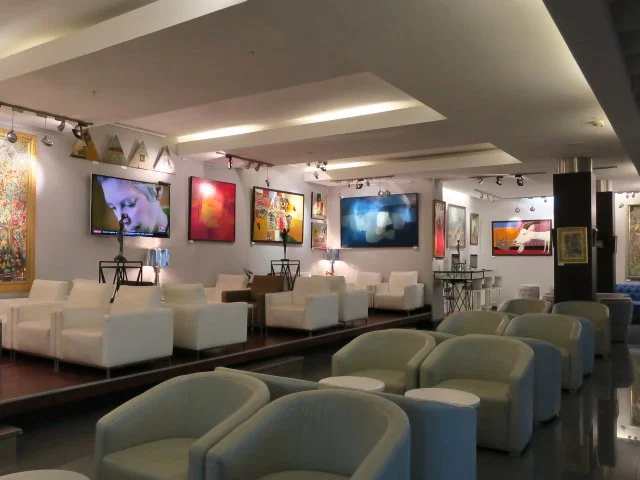 A vacant business class lounge. It's like a gallery, but very comfy.