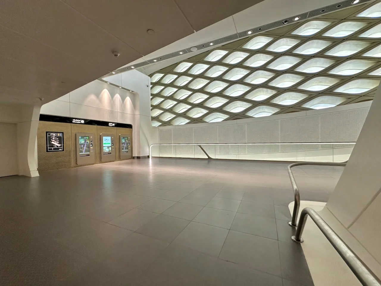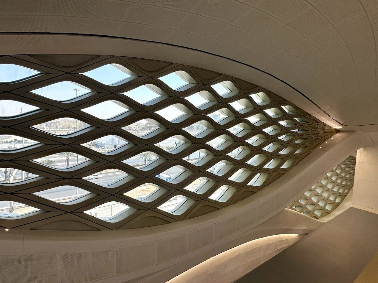 ザハ・ハディド・アーキテクツによるキングアブドラフィナンシャルディストリクト(KAFD)メトロステーションは、今のサウジが持つ勢いを語るものの一つ。砂漠の風が砂の上に作るパターンにインスパイアされたモチーフやシェイプを繰り返して生み出した胎内のような内部空間は、交通機関の施設というよりもミュージアムを思わせる。この駅を体験してしまうと、東京がザハのスタジアムを持つ機会を失ったのがかえすがえす残念でならない。日本という国はもはや勢いを失ったということなのだろう。