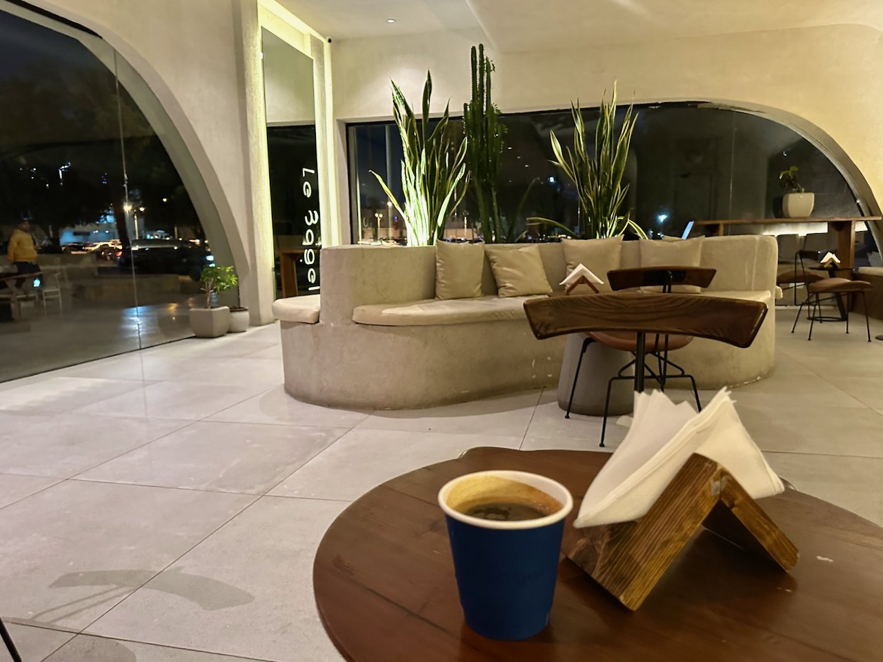 美味いアフターディナーコーヒーを探してリヤドのダウンタウンを歩いていると、幸運なことにかなりいい感じのベーグルカフェが見つかった。もしこの店が東京にあったら、この時間でも席の取り合いになるだろう。でもここリヤドでは、ご覧のとおり。