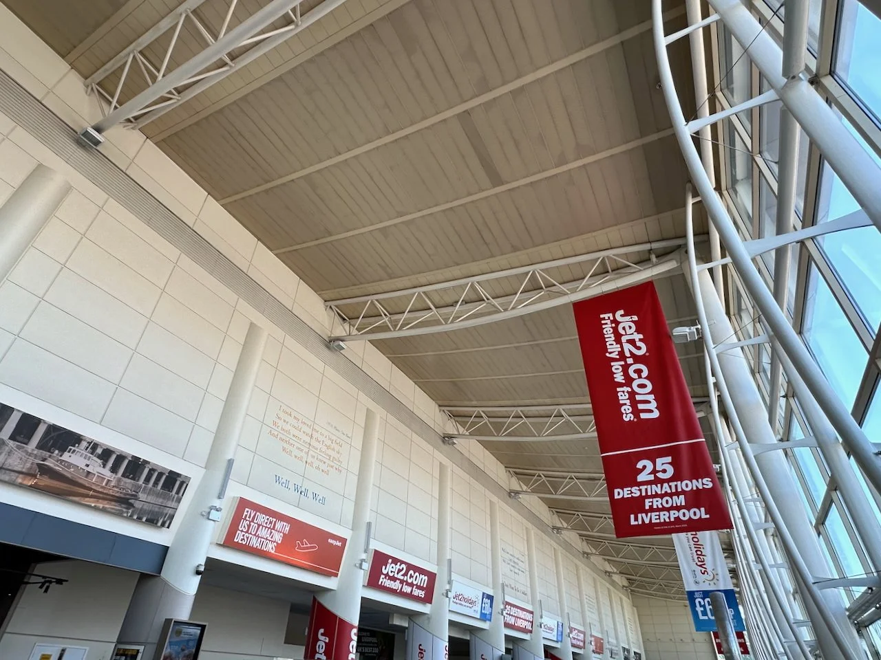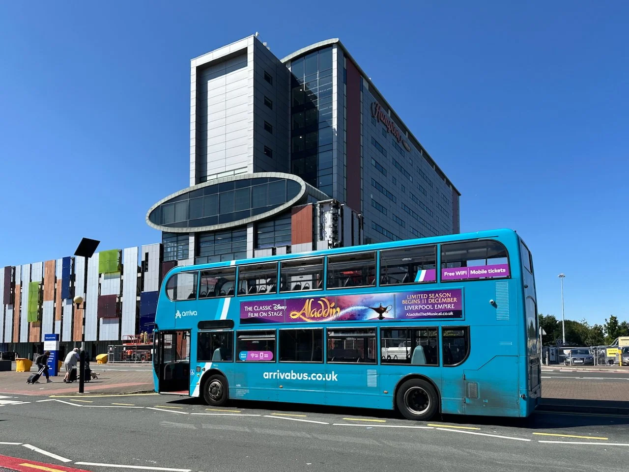 Changing from a Merseyrail train to a blue double-decker operated by Arriva UK Bus at Liverpool South Parkway Station, I went to see an international airport with quite a fascinating name—EGGP, Liverpool John Lennon Airport.