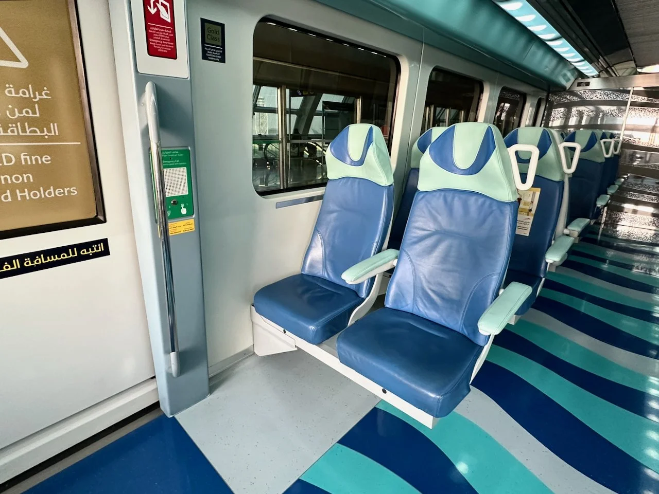 ドバイメトロに初めて乗車。リヤドメトロのファーストクラスに似たゴールドクラスという車両がついていたので試してみた。JR東日本の中央線快速電車に乗る必要があるときはいつもグリーン車を愛用しているが、東京の通勤電車や地下鉄にもこういう車両があったほうがいいのでは?
