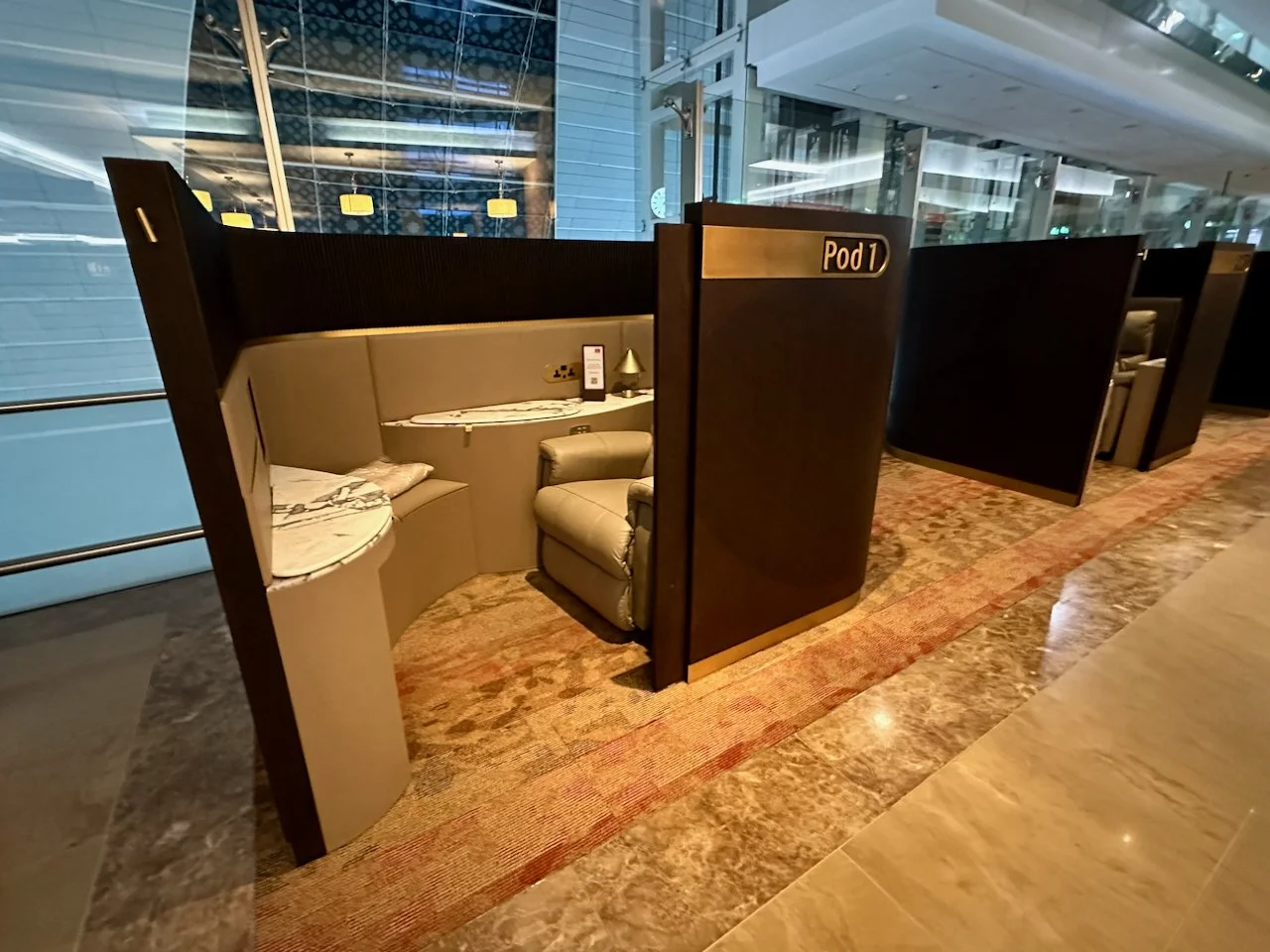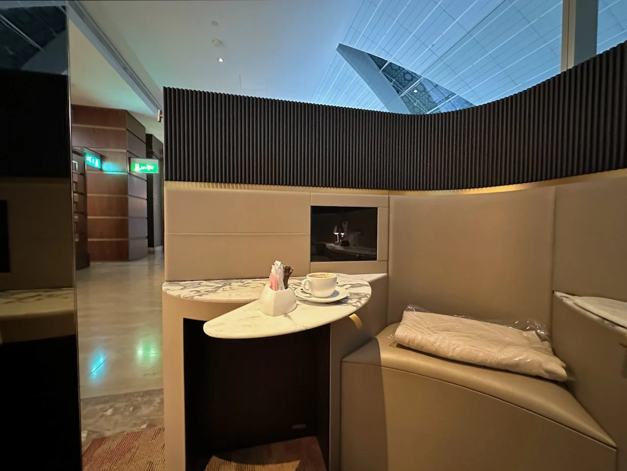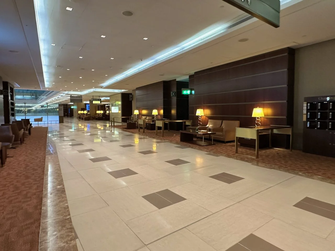 This lounge is on another level. Here at Concourse A of Dubai International T3, the Emirates First Class Lounge occupies the entire third level of the concourse. It might be more accurate to call it a First Class terminal rather than a lounge, given its scale—and the fact that you can board directly from here via a F Class–only gate. It features a full-size duty-free shop, restaurants, bars, spacious nap rooms, countless seating areas, and a central avenue that belongs in a regular terminal. I’ve used many premium-class lounges around the world, but this is the first time I’ve found myself exhausted from walking while exploring the facilities. This is a lounge where you might actually get lost.