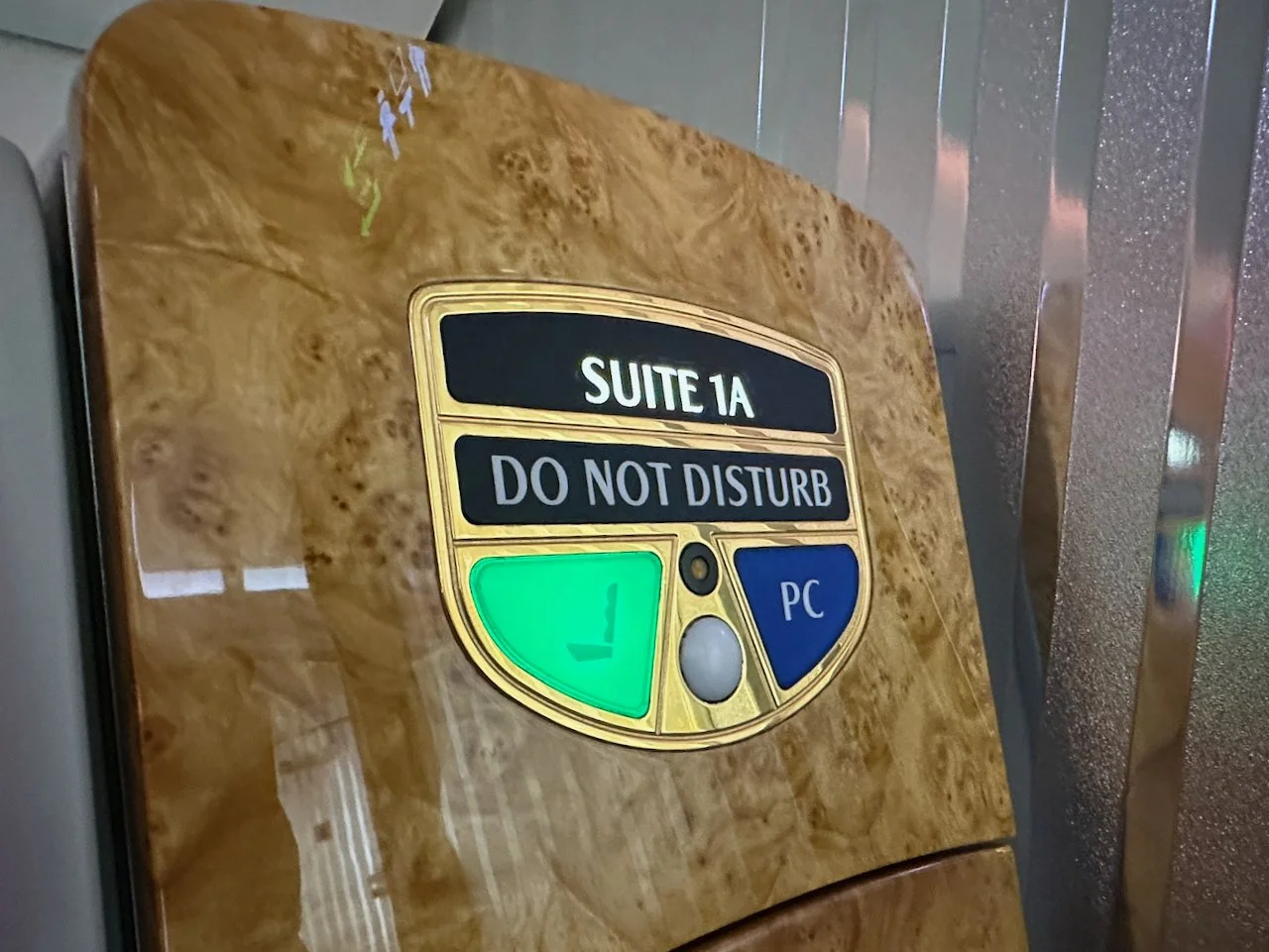 Settled into Suite 1A. After experiencing the Game Changer First, this one feels a bit small, and having four suites in a row on a widebody is no longer industry-leading—but it’s still good enough. And right in front of my suite is something the Game Changer First doesn’t have: the Shower Spa.