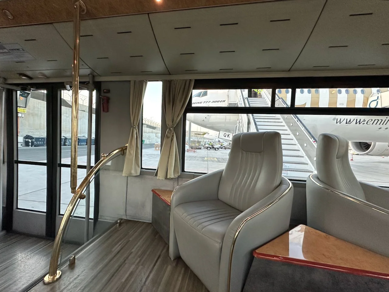 The First Class passengers are sent to the terminal on a dedicated bus. For this arrival flight, the bus was operated only for me and the other selfish guy.