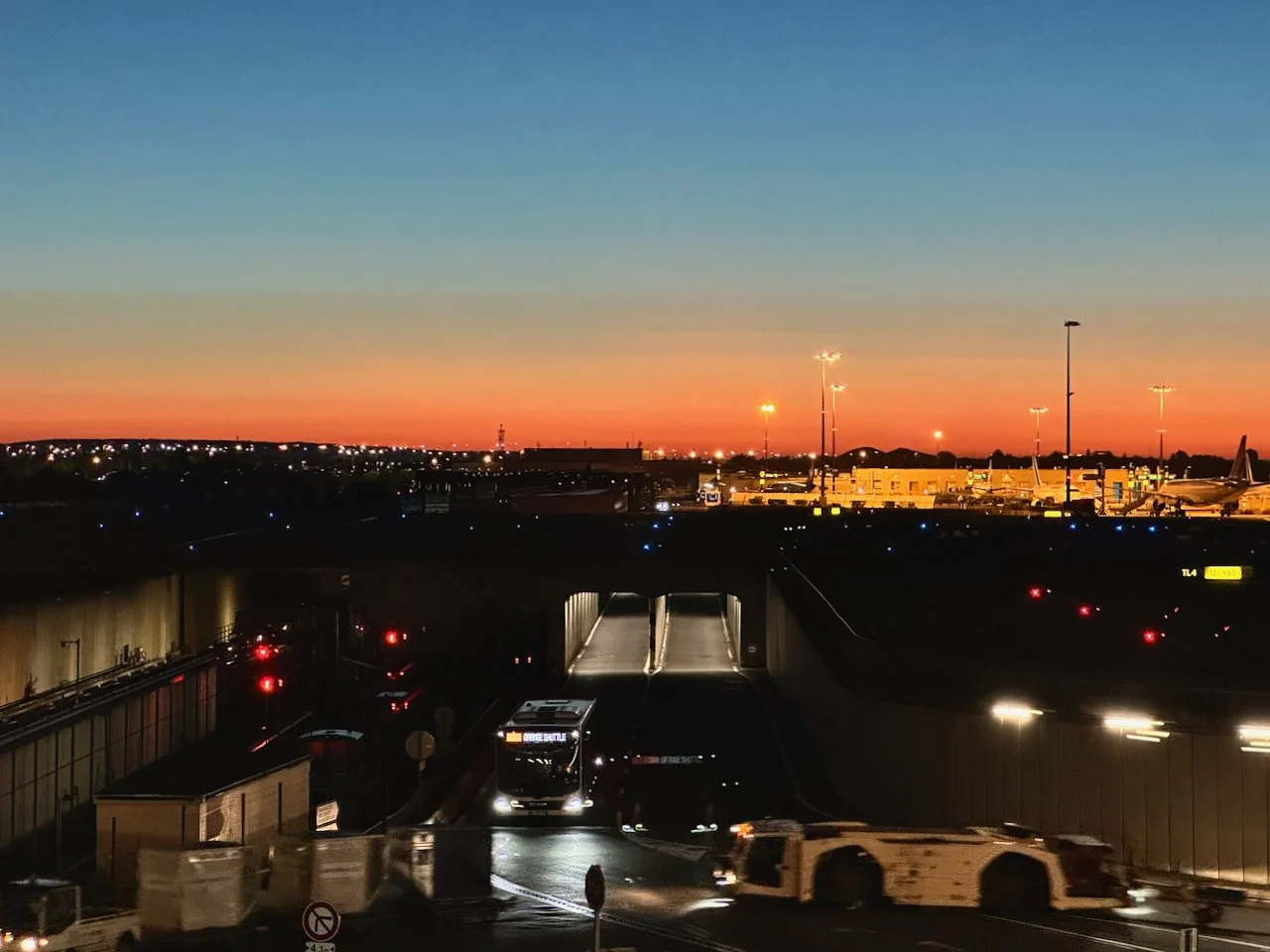 A dawn over a towing tractor. I welcome a new day at the Air France lounge inside CDG2E Hall M.