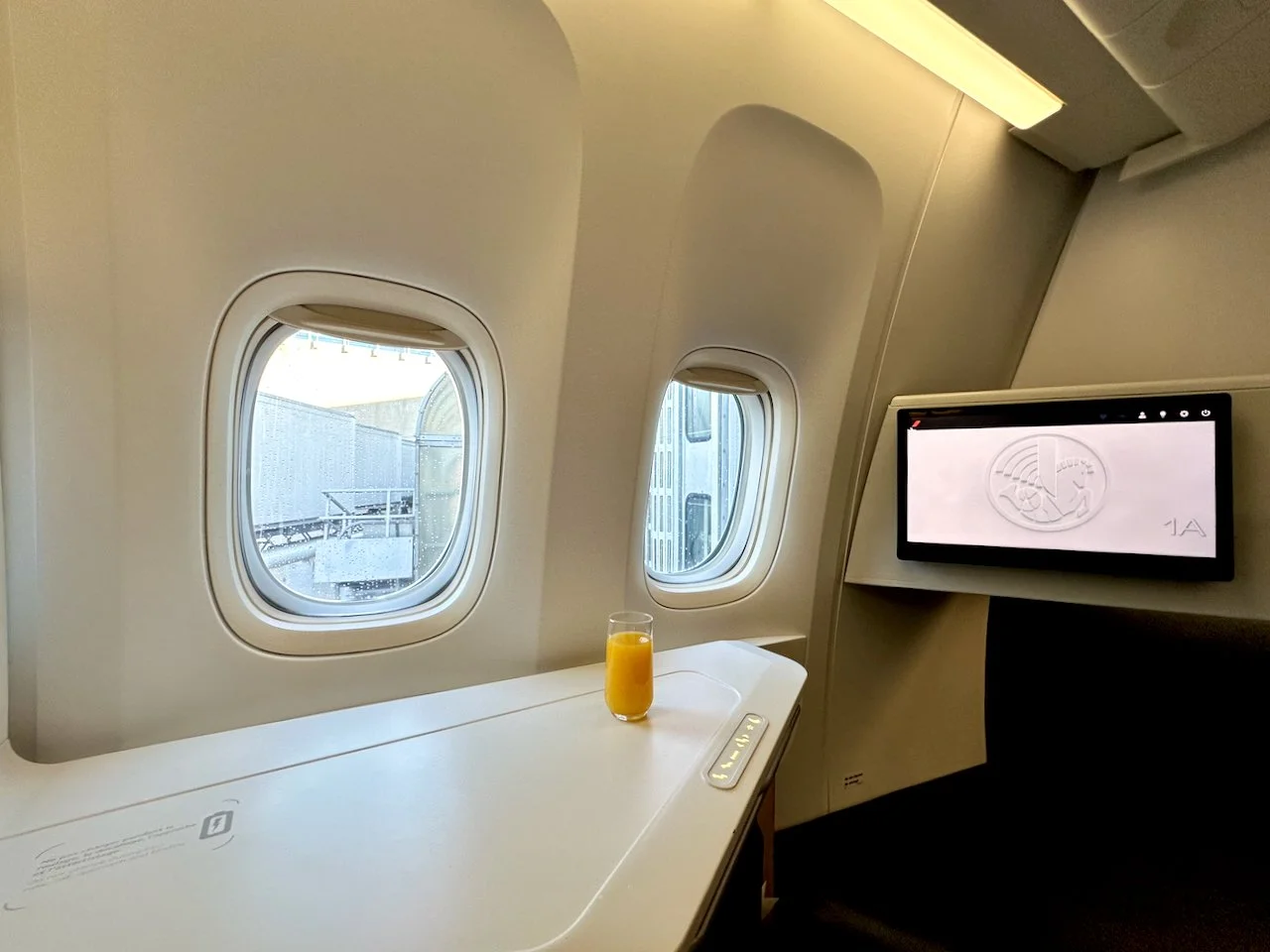 朝便で羽田へ戻る時間。幸運なことに今回もキャビンで最良の席の一つ、プライベートスペースがより大きな1Aをとることができた。エールフランス B777-300 CDG-HND。生涯840フライト目。