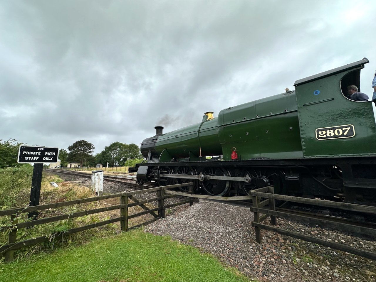列車は終着駅であるチェルトナム競馬場駅まで行くが、一つ前のゴザリントンで下車してみた。で、ここでようやく機関車とご対面。列車を引っ張ってくれていたのは、1905年に作られたGWR 2800型の2807号機だった。GWRでの運行からは僕が生まれる5年前に引退したが、完全なオーバーホールを経て、今でもまるで地方鉄道の主力機関車のように走り続けている。