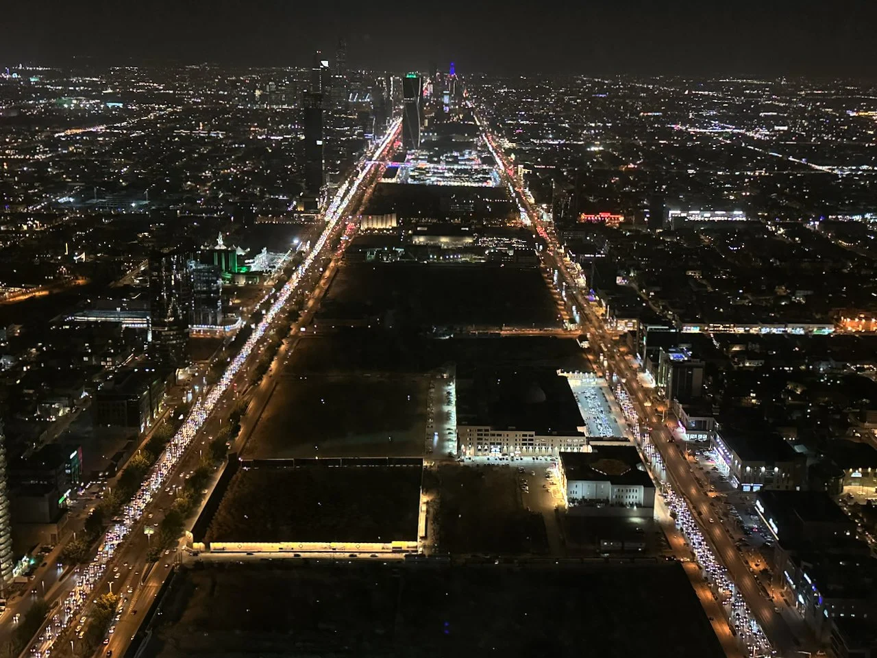 I usually skip typical tourist attractions. But when it comes to a sky bridge at the top of the tower owned by a company that belongs to Saudi royalty, which becomes part of the light show above downtown every evening, I found myself in a different mindset.