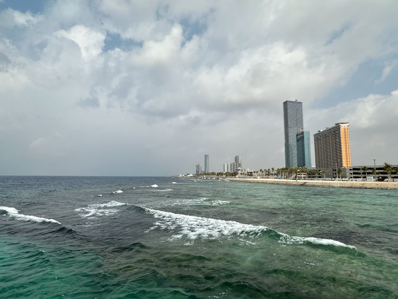 気分転換がしたくなったので、ジェッダの街の北側にあるウォーターフロントで紅海に沿って歩いてみた。家族向けの公園から、カフェ、レストラン、モール、ホテル、さらにはレースサーキットまで、このエリアにはありとあらゆるものがあるが、いい具合にのんびりしている。
