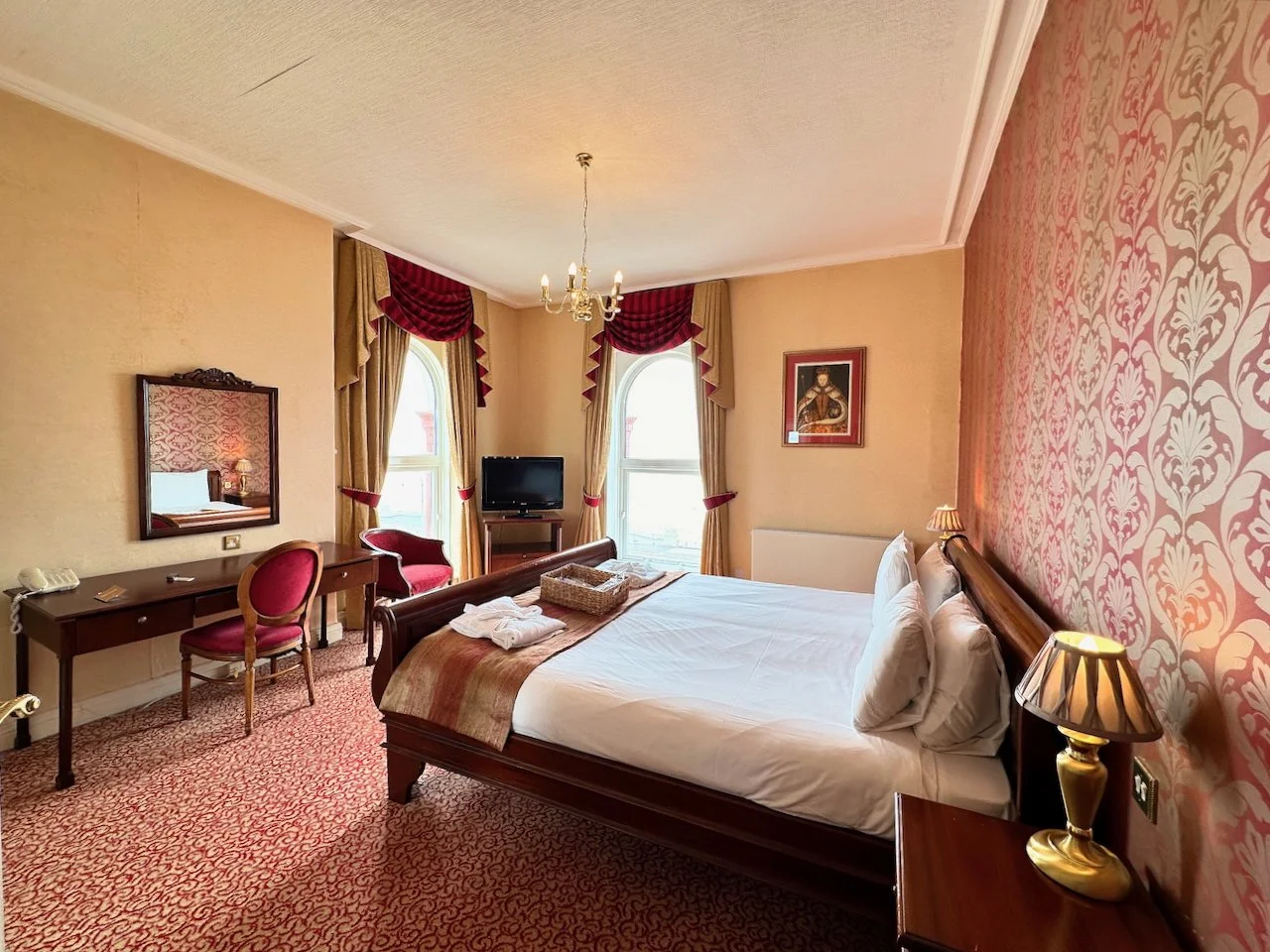 Hello, Blackpool. I start my days with the Irish Sea at the Imperial Hotel, opened in 1867 on the coast. The room I’ve got is the so-called Royal Suite, with a large living/dining room and two bedrooms. They say people like the Beatles, Bob Dylan, and Baroness Margaret Thatcher stayed in this suite.